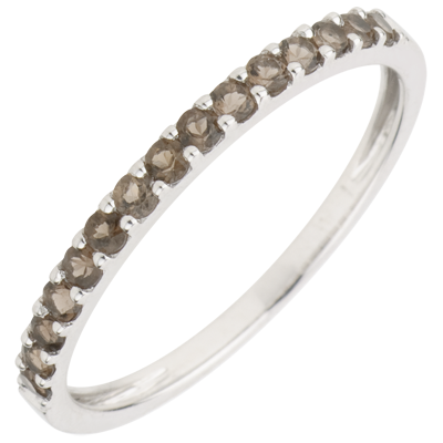 Anillo Aves del Paraíso - una fila - oro blanco 9 quilates y cuarzo ahumado