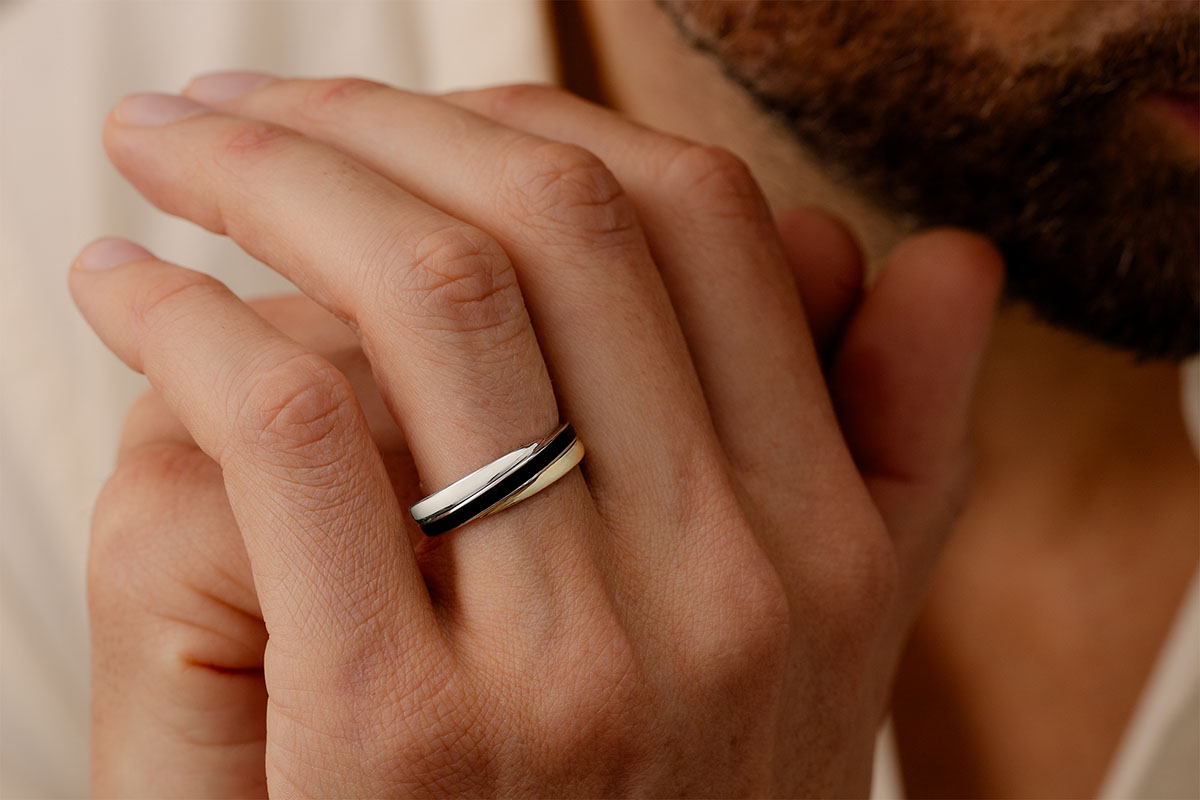 Anillo Saturno - Dúo de Lacas - oro blanco y oro amarillo 9 quilates