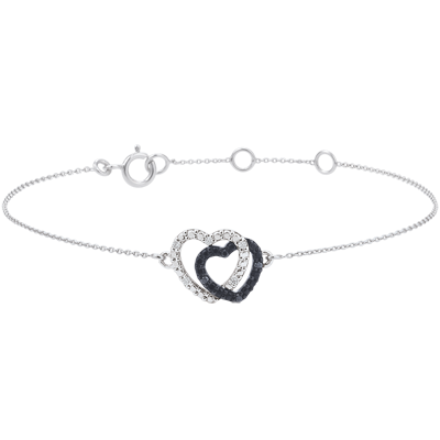 Los corazones están realzados por el brillo radiante de 5 diamantes y 4 diamantes negros deslumbrantes, que aportan un toque refinado a esta pulsera.