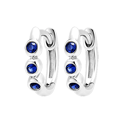 Estos aros Trio Zafiro en oro blanco ofrecen un juego de color vivo y cautivador
