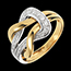 Este anillo ancho de la colección Hada combina la frescura del oro blanco con la calidez del oro amarillo 18 quilates, creando una joya moderna y atemporal.
