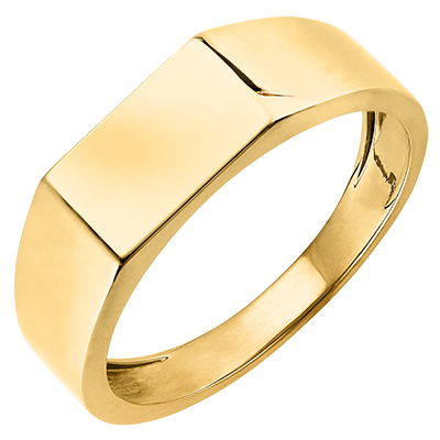 Un Anillo de Sello todo de oro amarillo con una bandeja rectangular. Una joya sencilla y elegante al mismo tiempo.