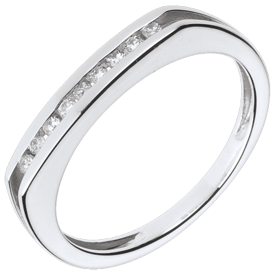 Mediados fleja mediados cuadrado, este anillo es compromiso de oro blanco y diamantes para uno formar una alianza entre clásico y originalidad.
