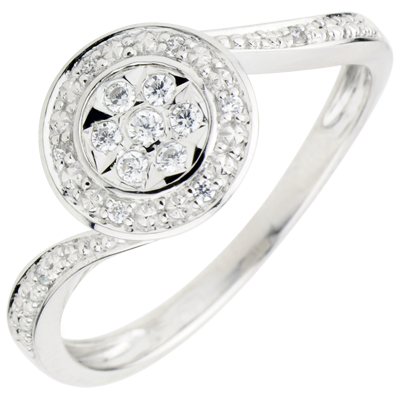 15 diamantes: 0.11 quilates - Oro blanco (9 quilates= 375/1000): 1.9 g.