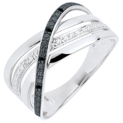 Anillo Saturno Cuatri - oro blanco 9 quilates - diamantes negros y blancos