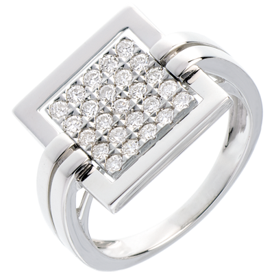 El sello perfecciona de un pavimento geométrico para una montura sobria y gráfica.