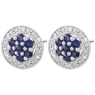 Un conjunto de zafiros rodeados de un círculo de oro incrustados de diamantes.