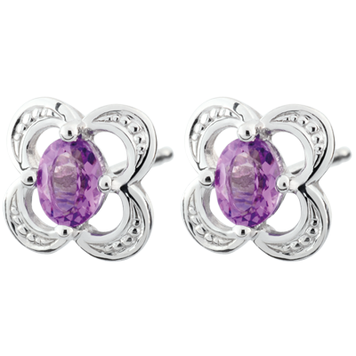 AVES DEL PARAíSO N.º 32Pendientes cortos Flores - Oro blanco 9 quilates - Amatista ID : 2469 4.7