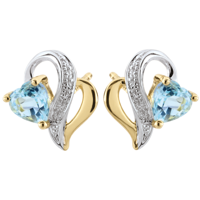 AVES DEL PARAíSO N.º 28Pendientes cortos - Oro blanco y Oro amarillo 9 quilates - Topacio azul ID : 2449 4.7