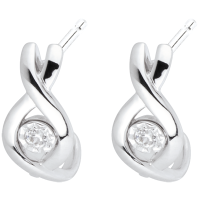 Dos serpentinas de oro blanco se entremezclan y enrollan un diamante solitario sobre cada pendiente.