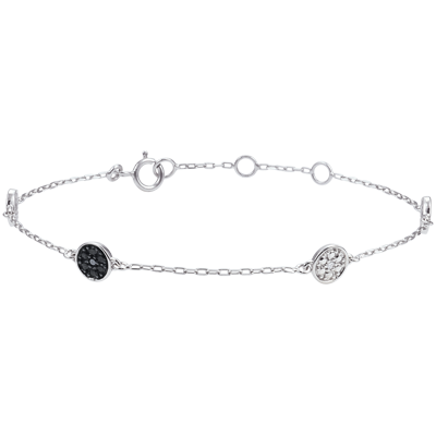 La alternancia de motivos negros y blancos trabajados en forma de diamante confiriere a los diamantes centrales un mayor brillo que el de las estrellas. Una pulsera Miríada elegante y femenina.Pulsera con longitud ajustable: 18cm, 17cm, 16cm.Motivo de 5mm ancho y 5mm de largo.