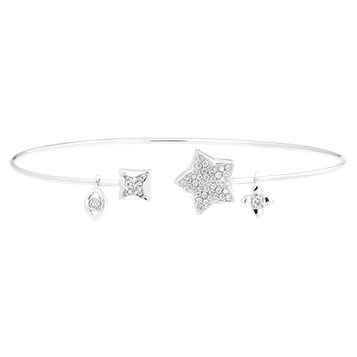 Brazalete Junco Abierto Frescura - Tú y Yo La Buena Estrella - oro blanco de 9 quilates y diamantes