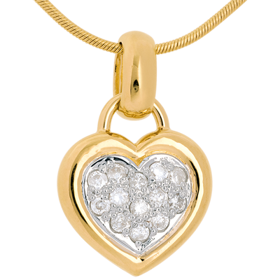 Colgante corazón empedrado oro amarillo - 0.26 quilates - 13 diamantes