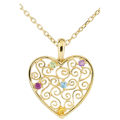 AVES DEL PARAíSO N.º 10Colgante Corazón - Oro amarillo 9 quilates - Amatista, Cuarzo citrino, Peridoto, Rodonita, Topacio azul ID : 2291 4.7