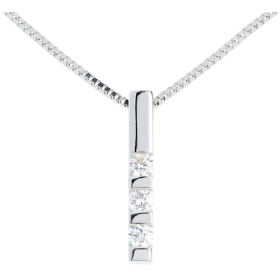 Icono de una trilogía de diamantes en un colgante ideal de oro blanco.