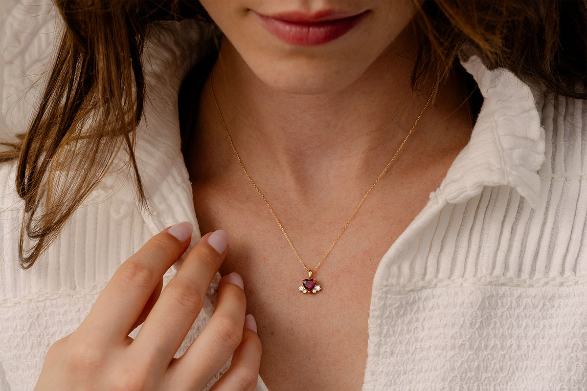 Collar Carmine – Oro Amarillo de 9 quilates con Diamantes y Rubíes Sintéticos