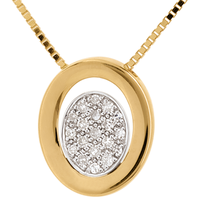 Con cadena de 42 cm con extensión de 3cm en oro de 18 quilates.
