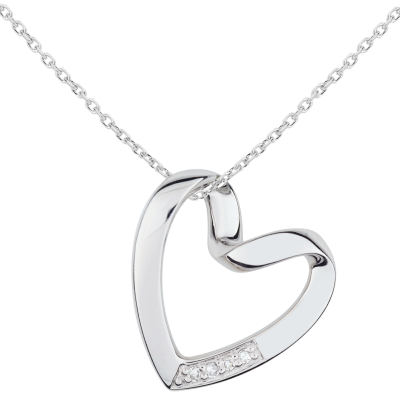 Un lazo de oro forma un corazón de curvas y movimiento. Lleva 4 diamantes.