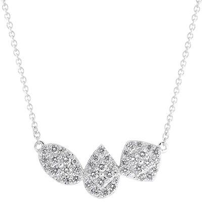 Un diseño muy moderno engastado con una miríada de diamantes dando un collar fino y elegante. Con cadena de doble posición 42 cm y 45 cm.