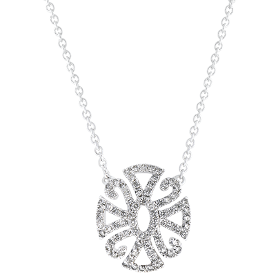 Una cruz romántica con contornos recubiertos, para un collar elegante, refinado y simplemente majestuoso. Con cadena de doble posición 42 cm y 45 cm.
