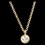 El collar cuenta con un diamante blanco de 0,09 ct con calidad mínima H en color y SI en pureza.
