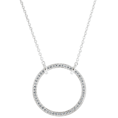 Un delicado círculo de oro blanco sublimado por un recubrimiento de diamantes. Un clásico renovado.Con una cadena de 45 cm de largo y una argolla de ajuste de 42 cm.