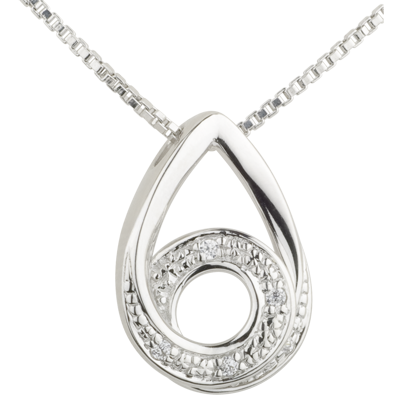 Una gota formado una espiral de diamantes en oro blanco se suspendió sobre una cadena veneciana. br>Con cadena de 42 cm con extensión de 3cm en oro de 18 quilates.