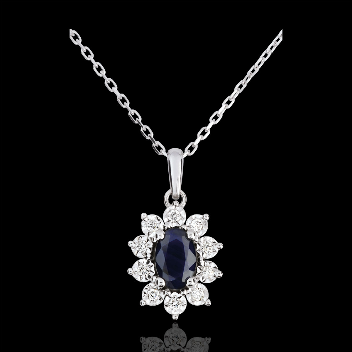 EDELWEISS ETERNA Nº1Collar Flores - Oro blanco 9 quilates - Zafiro sintético, Diamante de laboratorio ID : 4959 4.7