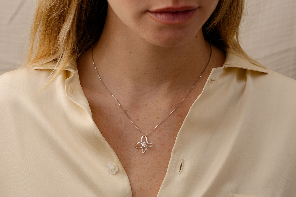 PASEO SOñADO N.º 8Collar Mariposa - Oro blanco 9 quilates - Diamante ID : 2464 4.7