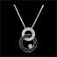 El círculo con diamantes negros contrasta con otro pavimentado con diamantes blancos, que lleva un diamante solitario en una pastilla de oro.