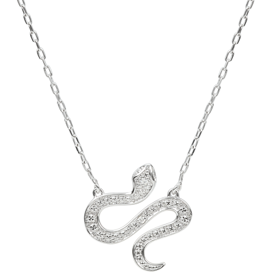 Este collar con una serpiente de oro blanco y formas sinuosamente hechizantes está decorado con diamantes para conseguir un toque chic moderno.