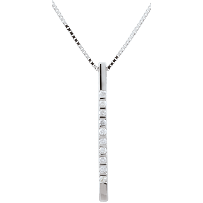 Una línea recta llena de diamantes que iluminará su escote. Una joya de las más modernas, atemporales y elegantes.