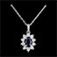 El collar está adornado con 10 diamantes que suman 0,08 quilates y un zafiro azul de 0,56 quilates.