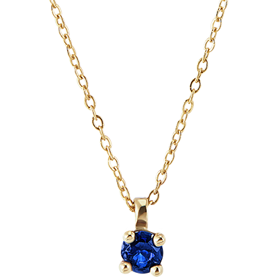 La elegancia y la esencia de un zafiro sobre una cadena de oro amarillo. Una joya clásica y atemporal con un toque de color.