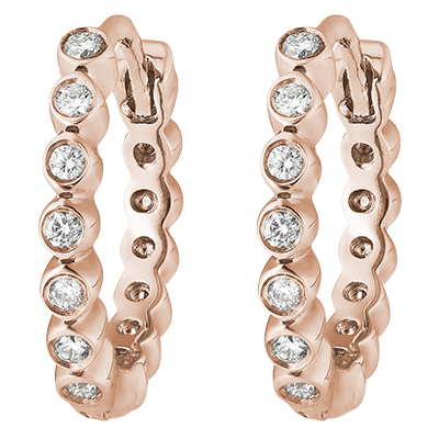Un círculo de perlas de oro rosa engastadas con diamantes. Un par de criollas femeninas que son a la vez clásicas y originales.14 diamantes: 0,07 quilates.