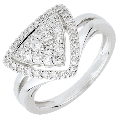 Una lanzadera de oro blanca triangular es constelada diamantes para un viaje hacia el infinito