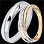 Dúo de alianzas Saturne – Oro blanco, tres oros y diamantes – 18 quilates