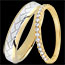 Un par de alianzas elegante para ella & él. Para ella, un anillo semi engastado con 18 diamantes (0,26 quilates). Para él, un anillo de oro amarillo con bordes biselados y centro tejido en oro blanco. La elección perfecta para unir dos almas sofisticadas.…