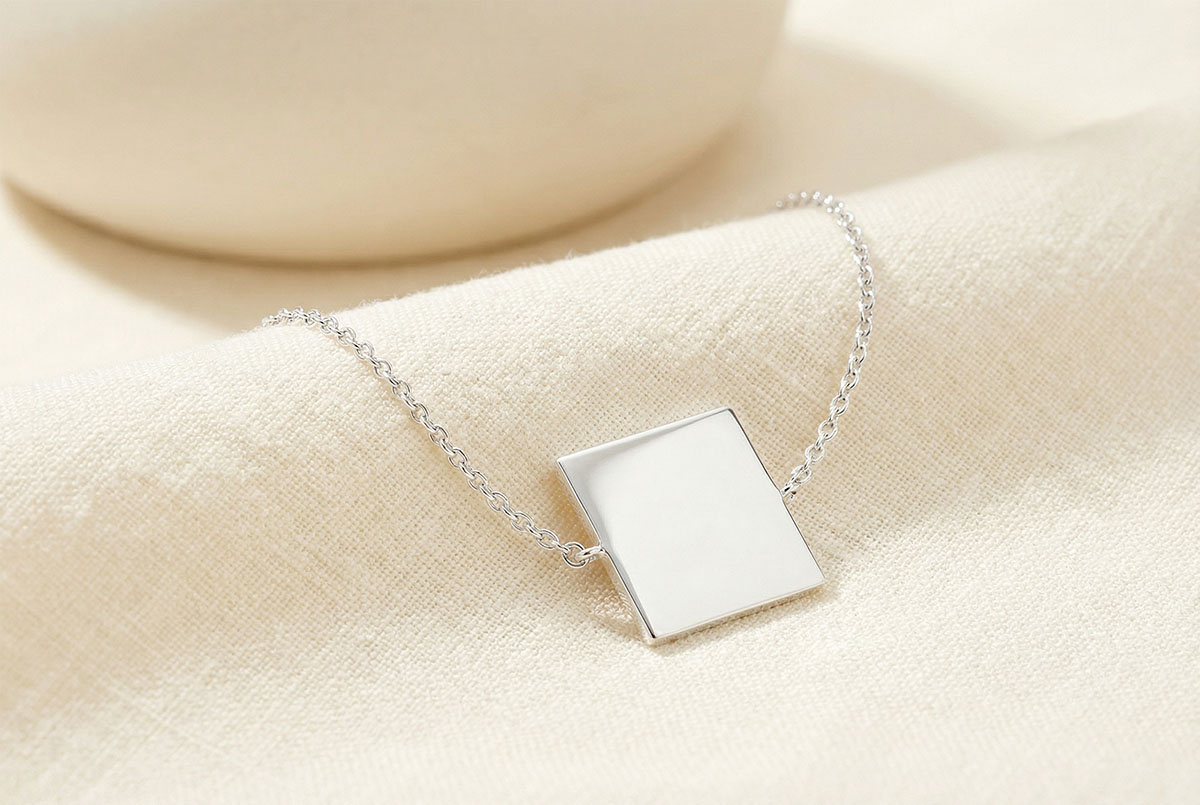 Brazalete de medalla cuadrada para grabar - Oro blanco 18 quilates