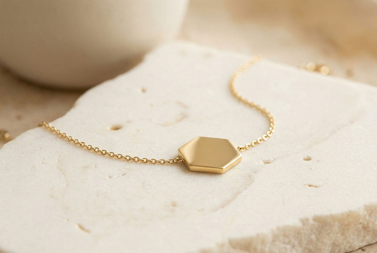 Brazalete de medalla hexagonal para grabar - Oro amarillo 9 quilates