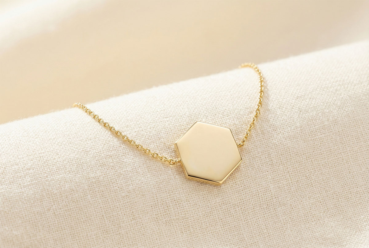 Brazalete de medalla hexagonal para grabar - Oro amarillo 18 quilates