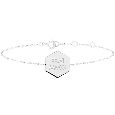 ABC YOURS N.º 5Brazalete con medalla grabada hexagonal - Oro blanco 9 quilates ID : 4938