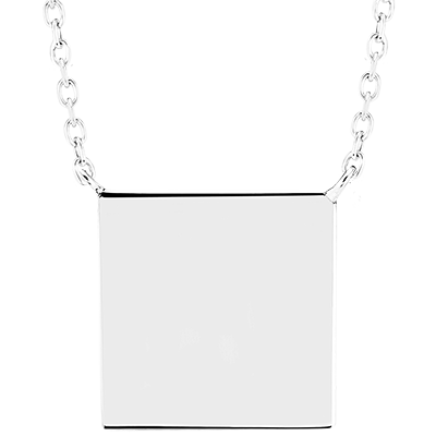 Collar de medalla cuadrada para grabar - Oro blanco 9 quilates