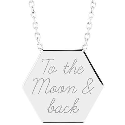LOVELY YOURS N.º 8Medalla grabada hexagonal - Oro blanco 9 quilates ID : 4946