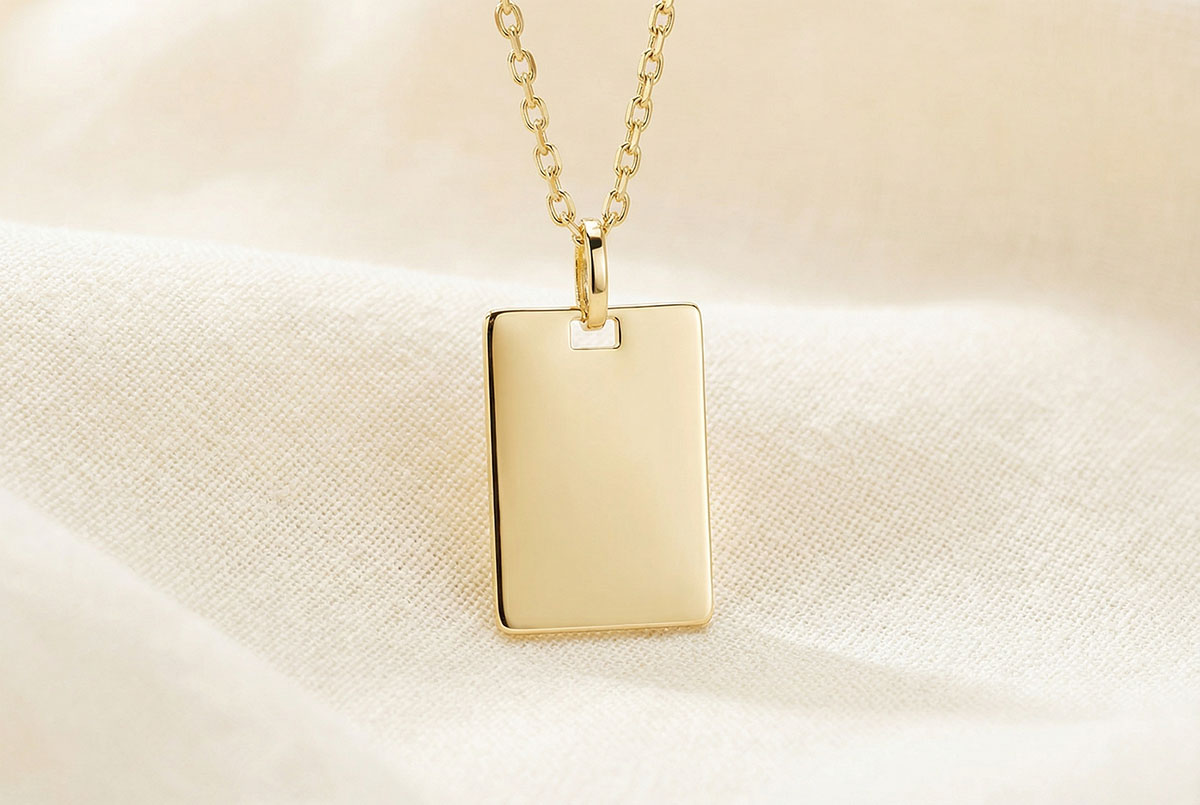 Medalla rectangular para grabar - Oro amarillo 18 quilates