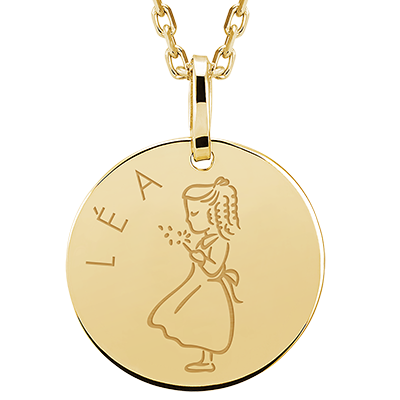 LOVELY YOURS N.º 16Medalla grabada redonda - Oro amarillo 9 quilates ID : 4811 4.7