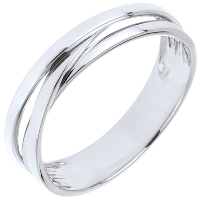 Una trilogía de aros de Oro Blanco enlazados dan lugar a una alianza parece estar en un constante y delicado movimiento.