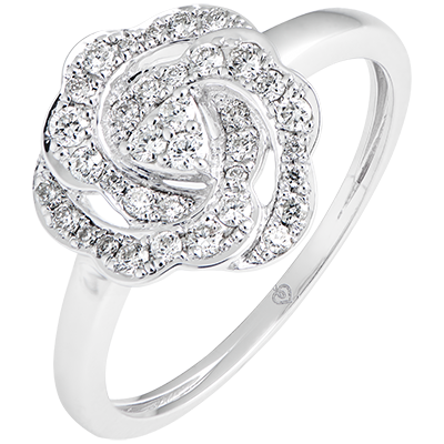36 diamantes: 0.25 quilates - Oro blanco (9 quilates= 375/1000): 2 g.