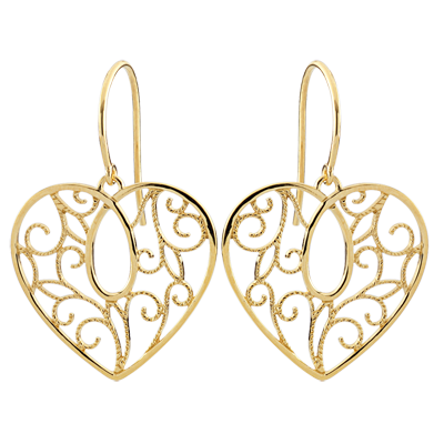 Pendientes Corazón Arabesco - oro amarillo 9 quilates