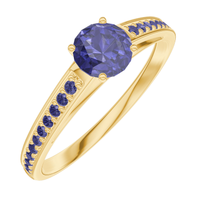 « L'ATELIER » N.º 1000768Anillo Oro amarillo 9 quilates - Zafiro sintético redondo 0.3 quilates - Engastado Zafiro azul 4.5